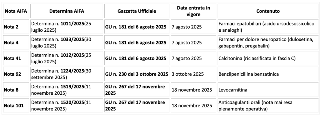 Box 2 – Le note AIFA abrogate nel corso del 2025